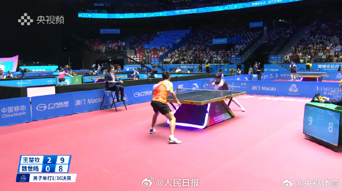 11月10日,十五运会乒乓球比赛在澳门星河综艺馆延续进行。在刚刚适度的一场男单1/16决赛中,北京队选手王楚钦以4:1治服黑龙江队选手魏世皓,晋级男单16强。