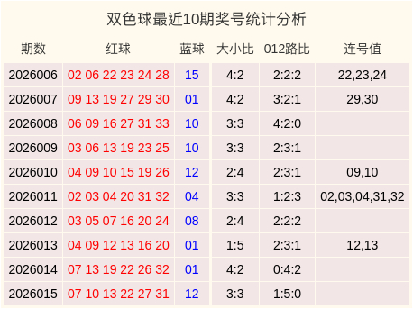 最近10期双色球奖号统计表