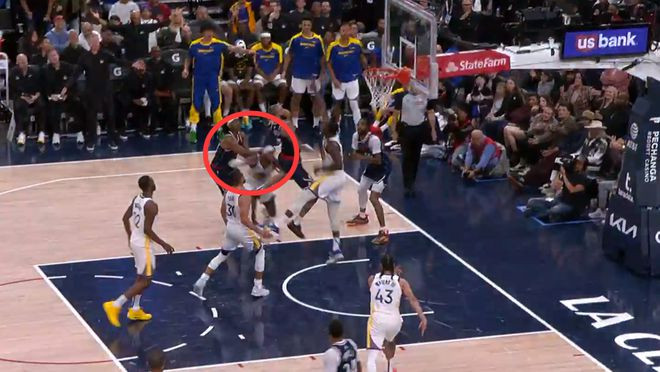 第二次漏判发生在距离比赛落拓还有1分20秒,快船的曼恩推了希尔德的背部,形成他失去均衡,这是一次漏吹的贫苦犯规,骁雄亏欠,快船赢利。
