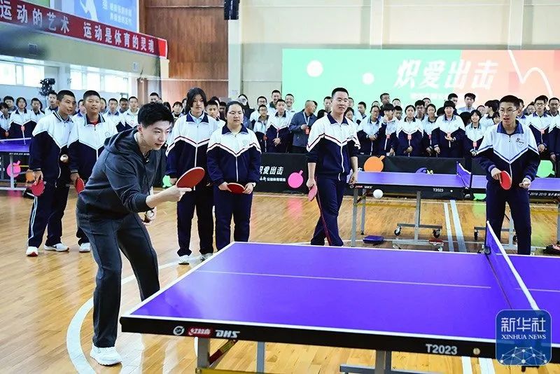 2023年10月,马龙在“炽爱出击”公益步履中,前去鄂尔多斯东胜区第一中学教授生们打球。