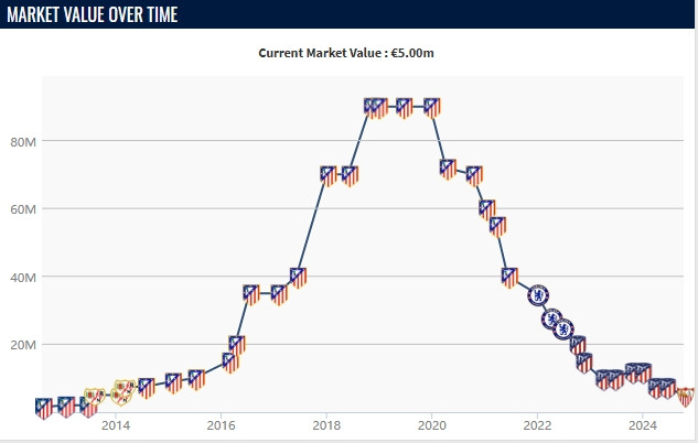 直播吧12月26日讯现年30岁的西班牙中场萨乌尔本赛季被马竞外租至塞维利亚效率,5年前身价仍为9000万欧的他,当今身价仅剩500万欧。