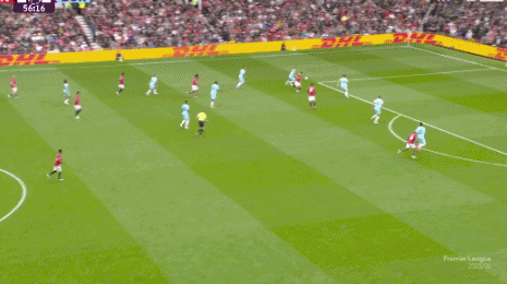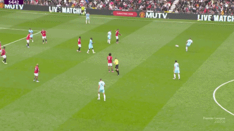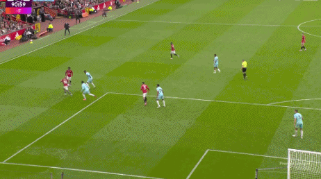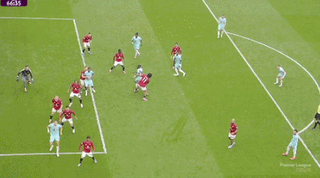 57分钟,曼联中圈开球,回传给巴因德尔,后者大脚送到前场,都尔克泽摆渡,达洛特得球禁区内送出倒三角传球,姆伯莫扫射到手,曼联2-1!